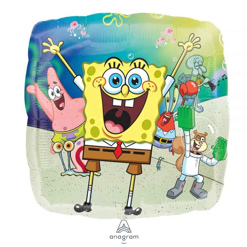 Palloncino Mylar quadrato 18", 45 cm, con grafica di SpongeBob SquarePants, perfetto per decorare feste di compleanno e eventi a tema. Colorato e resistente, può essere gonfiato ad aria o elio per un effetto scenografico. Ideale per regalare allegria ai piccoli fan di SpongeBob!