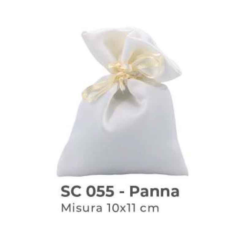 Set di 10 sacchetti in raso panna 10x11 cm, perfetti per bomboniere o fine festa. Eleganti e delicati, ideali per matrimoni, battesimi, comunioni e altre cerimonie. Morbidi e resistenti, aggiungono un tocco raffinato alla confezione di confetti, gioielli o piccoli regali.