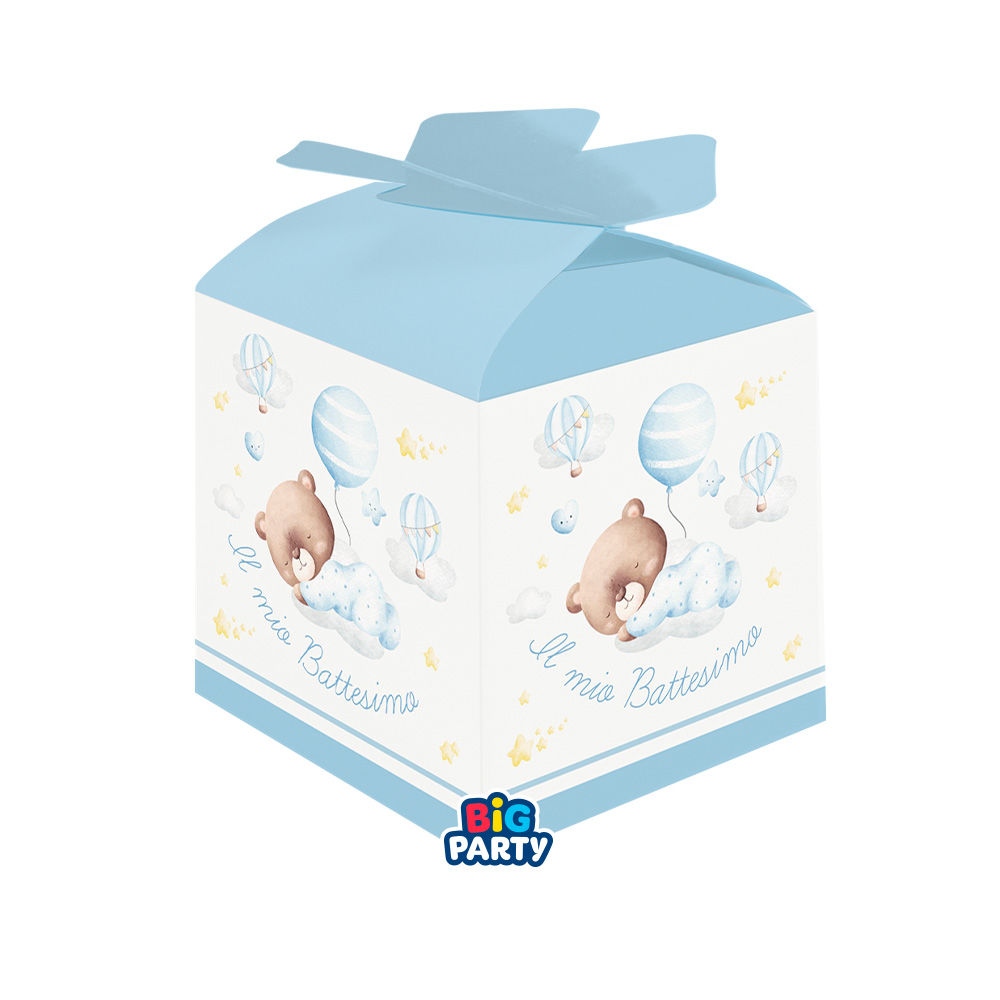 10 Scatoline Cubetto Fiocco Battesimo Baby Bear Celeste