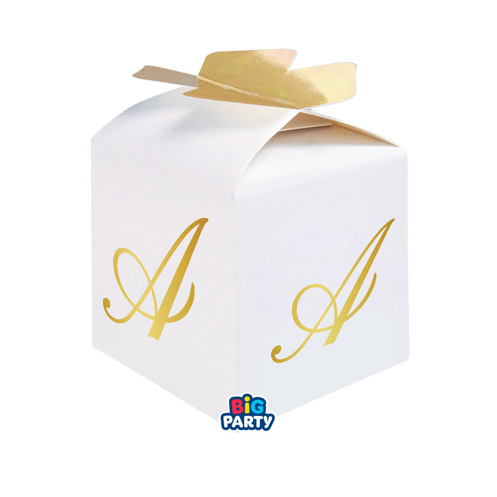 10 Scatoline Cubetto Fiocco Lettera A - Scatoline 5x5x7 cm bomboniera firmate Big Party, ideali per eventi eleganti e personalizzati.