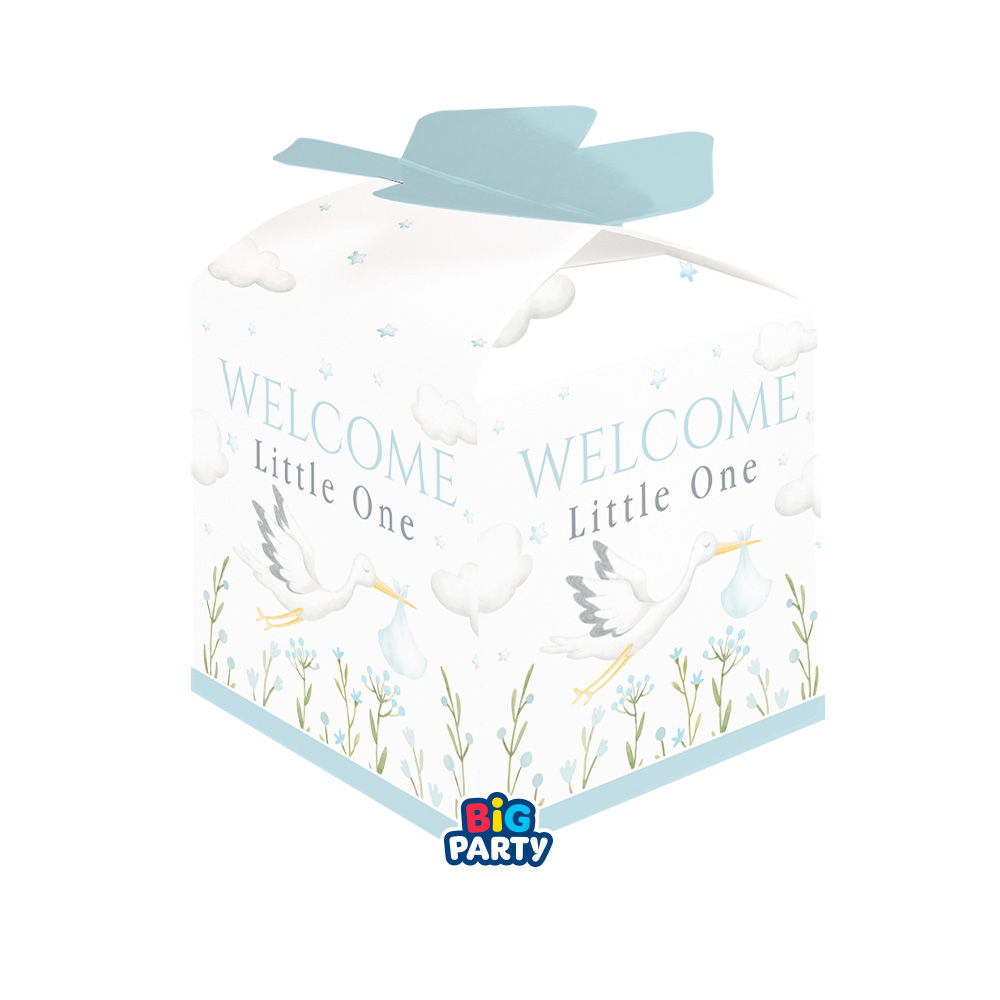 Scatoline Welcome Little One Blue – 10 pezzi firmati Big Party, ideali come porta confetti per nascita e battesimo bimbo.