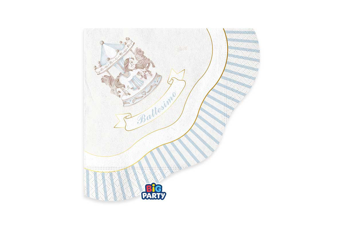 Tovaglioli in carta tema battesimo con carillon celeste, ideali per allestimenti eleganti, firmati Big Party.