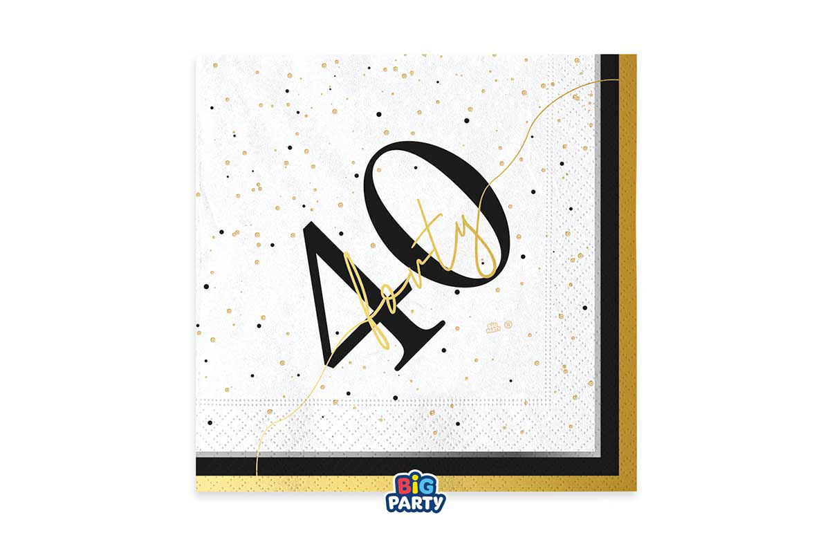 Tovaglioli in carta “Happy Birthday 40” linea Prestige, perfetti per feste di quarantesimo eleganti, firmati Big Party.