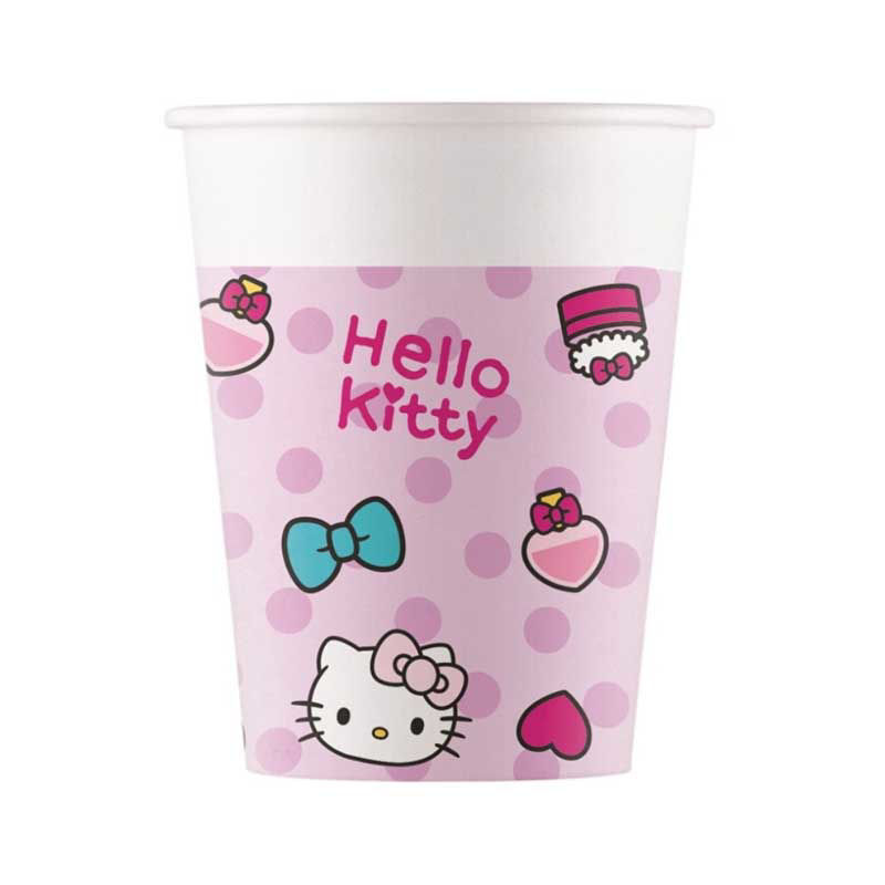 Completa la tua tavola con i bicchieri Hello Kitty 200 ml, realizzati in carta resistente e decorati con la dolcissima icona amata da tutti.