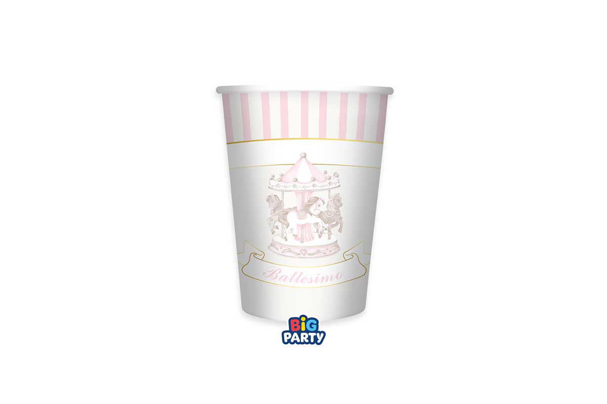 Bicchieri in carta tema battesimo con carillon rosa da 250 cc, ideali per allestimenti nascita e battesimo, firmati Big Party.