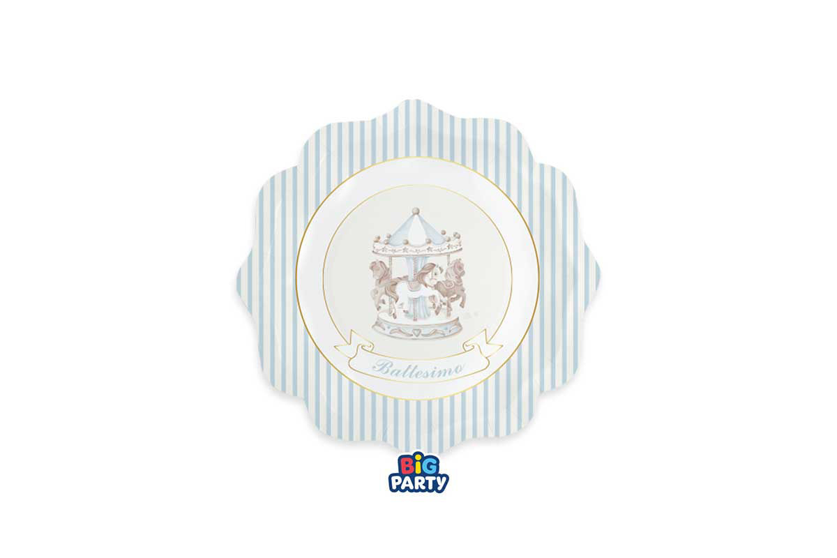 Piatti in carta tema battesimo con carillon celeste da 20 cm, ideali per allestimenti nascita e battesimo, firmati Big Party.