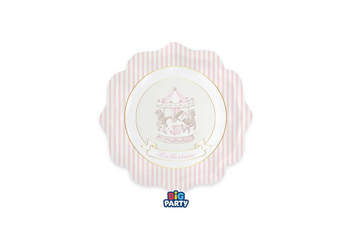 Piatti 20 cm Battesimo Carillon Rosa 6 pezzi