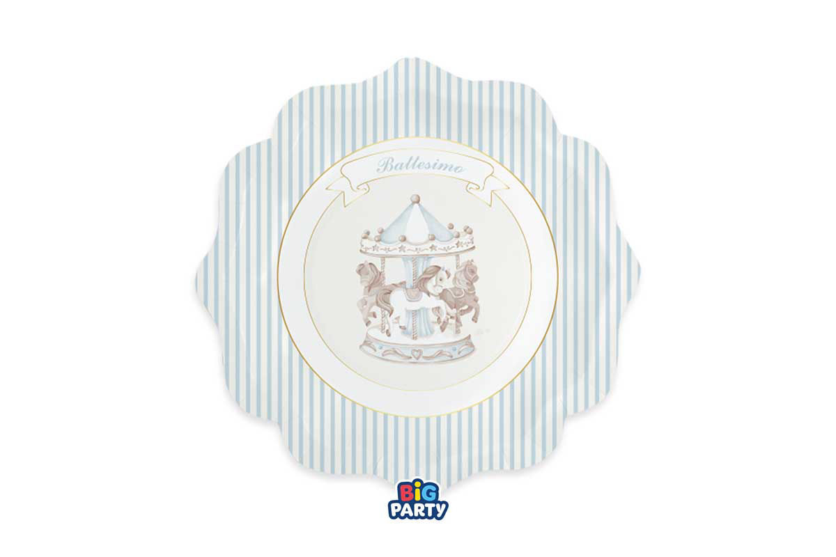 Piatti in carta tema battesimo con carillon celeste da 25 cm, ideali per allestimenti nascita e battesimo, firmati Big Party.