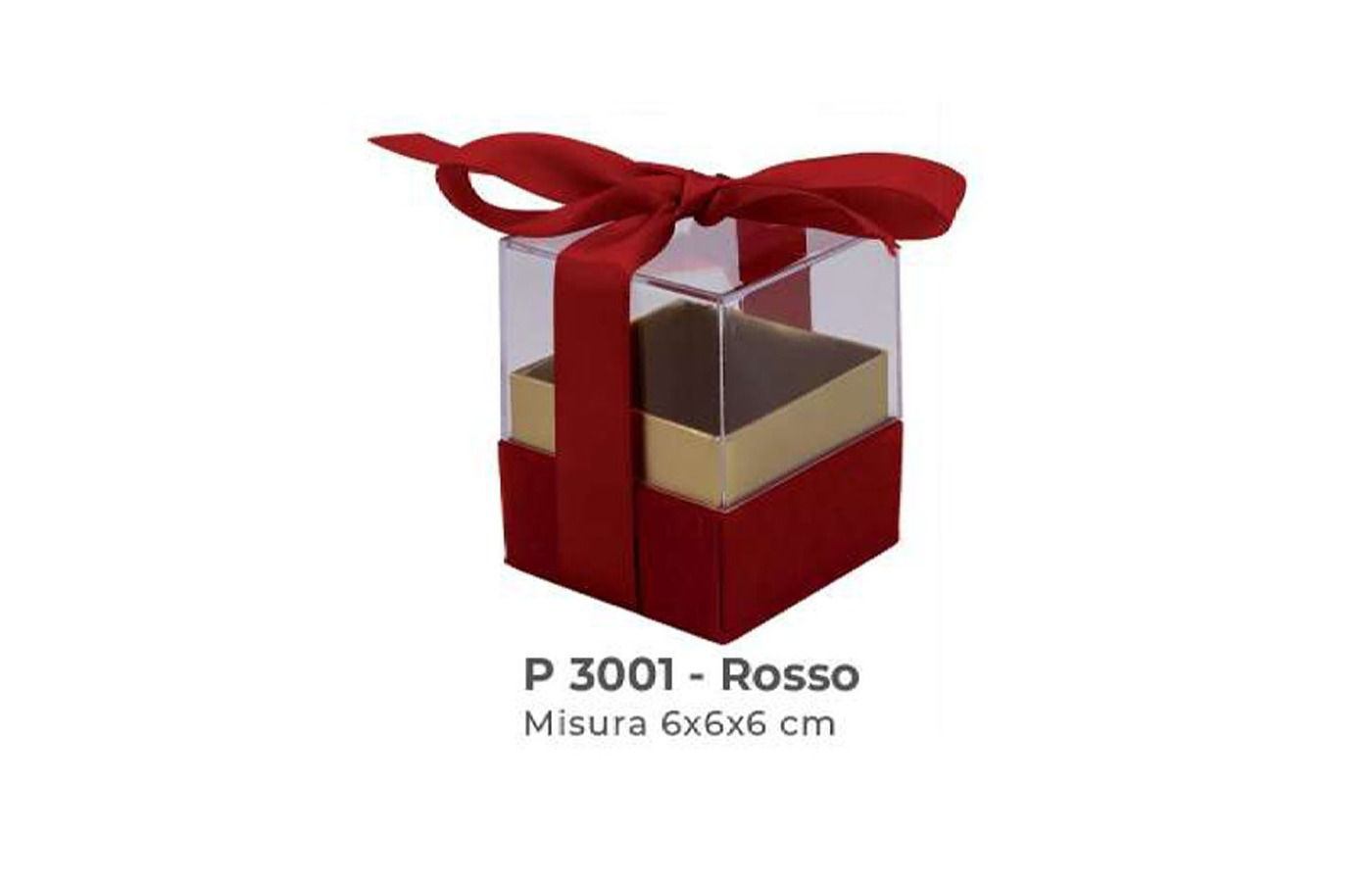 6 Scatole Plexiglas con fiocco Rosso e base velluto 6x6x6 cm