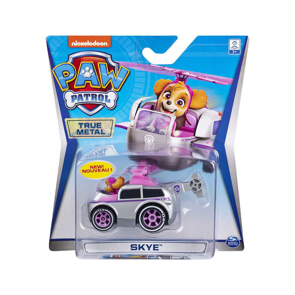 Skye, la cucciola pilota coraggiosa e intelligente, guida il suo veicolo argentato e rosa con elica posteriore pronta al decollo. Perfetto per bambini dai 3 anni in su, questo veicolo True Metal è ideale anche come pezzo da collezione.