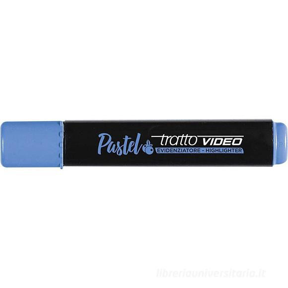 Evidenziatore Tratto Video colore azzurro pastello con punta a scalpello, ideale per evidenziare testi con un tratto morbido e delicato. Ricercabile come evidenziatore, evidenziatori, marca testo, marcatore, evidenziatore pastello, evidenziatore azzurro.