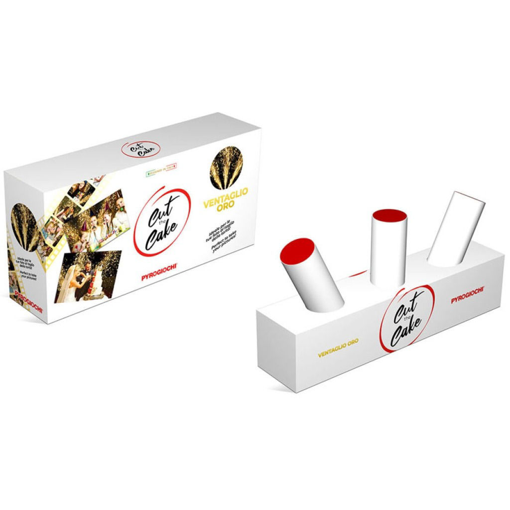 Fontana pirotecnica a ventaglio "Cut the Cake", progettata per uso esterno. Crea un effetto scintillante spettacolare, ideale per matrimoni, compleanni e celebrazioni all'aperto.