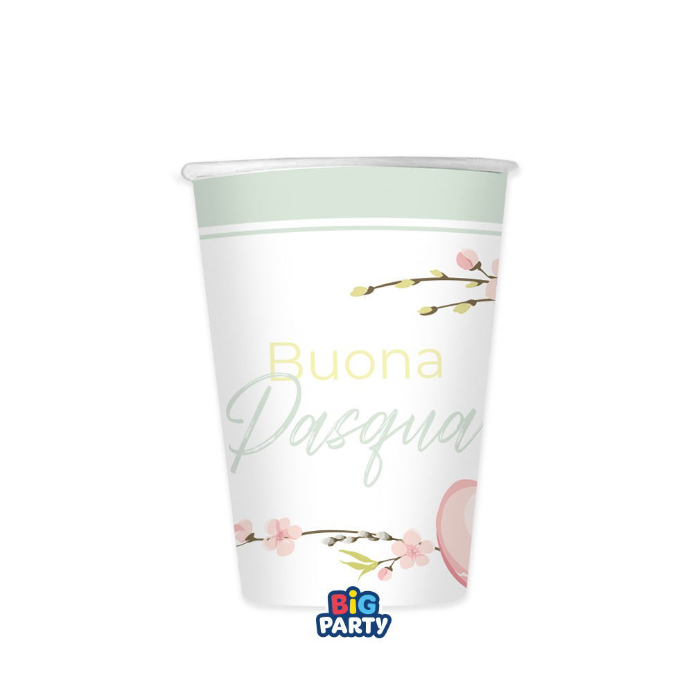 Set di 6 bicchieri in carta da 250 cc con decorazione “Buona Pasqua”, perfetti per il coordinato tavola Big Party. Resistenti ed ecologici, questi bicchieri monouso aggiungono un tocco festoso alla tua tavola pasquale, ideali per bevande calde e fredde durante pranzi e feste in compagnia.