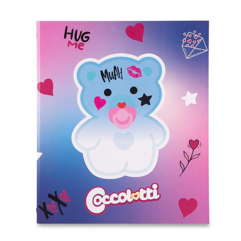 Raccoglitore A4 Coccolotti Love Azzurro con copertina rigida, 4 anelli in metallo e spazio per il nome. Prodotto ufficiale made in Italy.