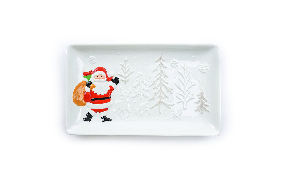 Vassoio natalizio in ceramica 32×19 cm con Babbo Natale, ideale per servire dolci, biscotti e decorare la tavola delle feste.