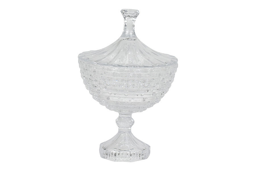 Porta caramelle in vetro 21,5 cm con coperchio, ideale per confetti, dolcetti e decorazioni tavola.