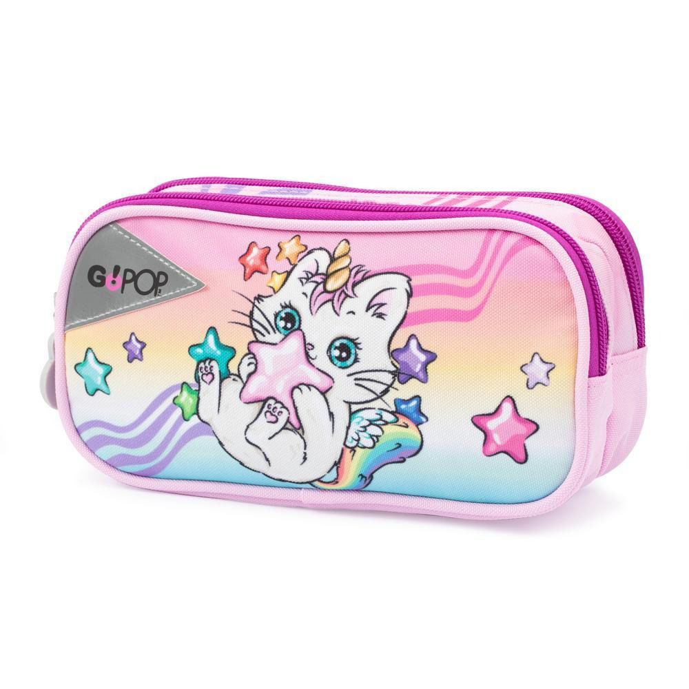 Astuccio 2 zip GoPop Meowcorn con dolce gattocorno, due scomparti spaziosi e dettagli riflettenti. Perfetto per la scuola primaria.