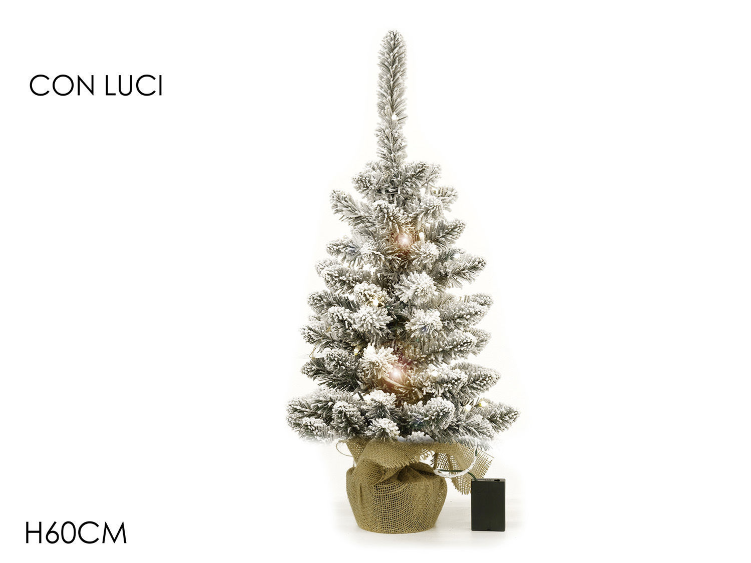 Alberello Innevato 60 cm con Luci LED Bianco Caldo