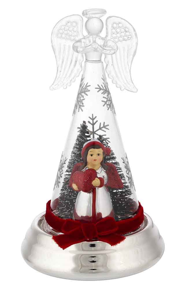 Albero argentato da 18 cm con angelo e cuore, raffinato articolo da regalo natalizio firmato Bagutta. Perfetto per decorare la casa o come elegante dono per le festività, unisce simbolismo e stile in un unico pezzo.
