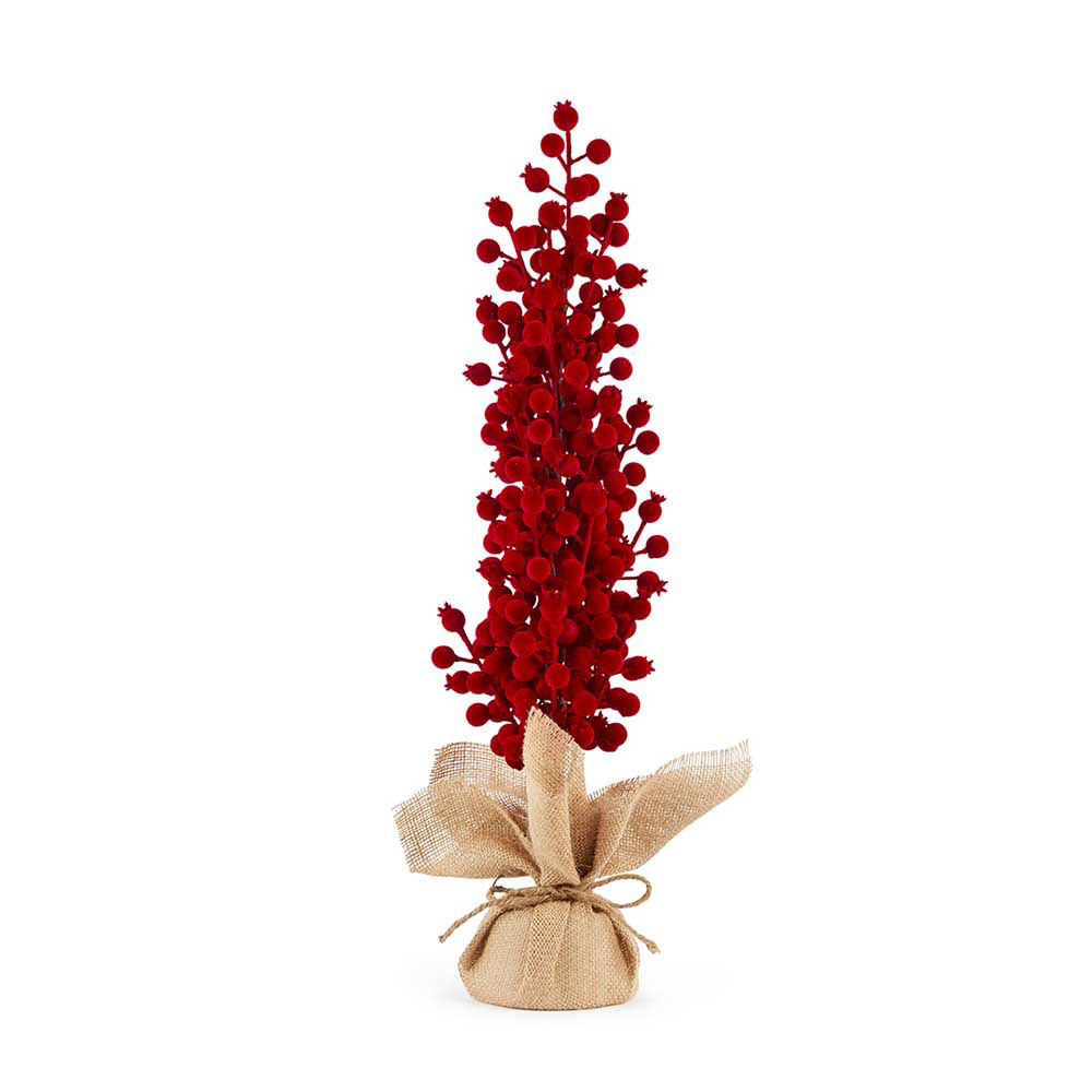 Albero decorativo di bacche floccate bordeaux in polistirolo e plastica, altezza 61 cm, elegante per arredare e addobbare durante il Natale.