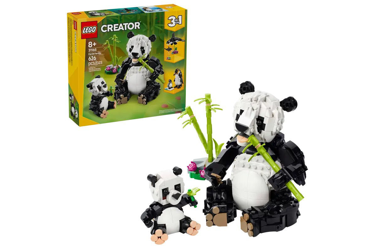 Set LEGO Creator 3 in 1 con panda snodabile e cucciolo, trasformabile in orca o pinguino. Ideale per bambini dagli 8 anni in su.