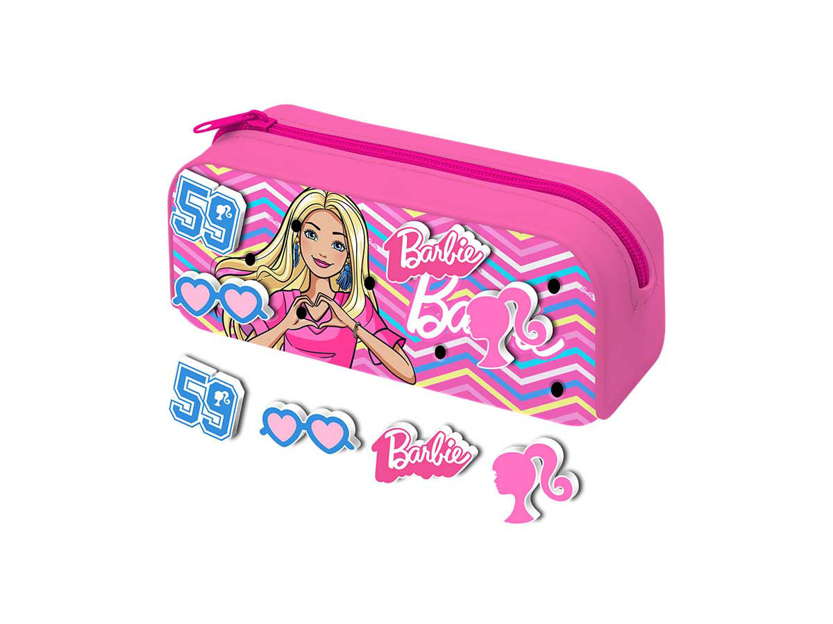 Astuccio in silicone con 4 Patch Barbie Disney, pratico e colorato, ideale per scuola e tempo libero.