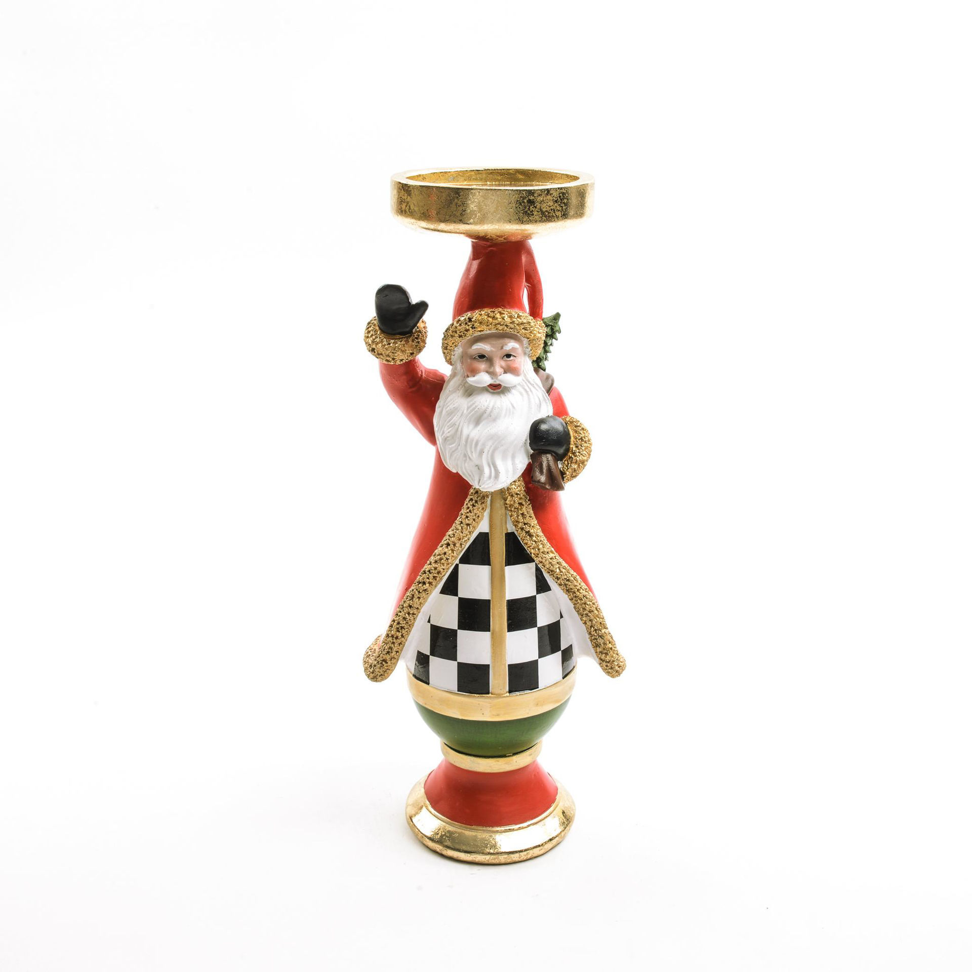 Portacandela natalizio in poliresina con Babbo Natale, misura 31,5 cm, elegante decorazione da tavolo o idea regalo in scatola.