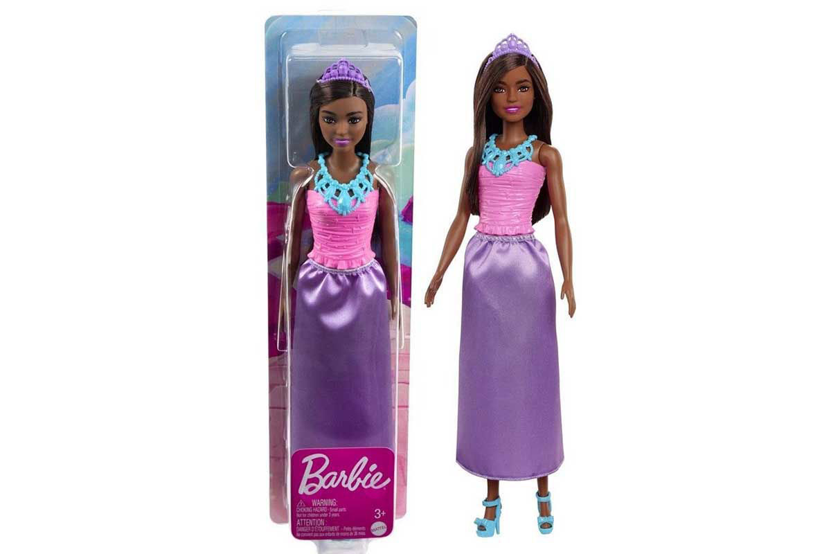 La Barbie Principessa DreamTopia indossa un elegante abito rosa e lilla con tiara brillante, perfetta per giochi fantasiosi ispirati al mondo incantato delle fiabe.