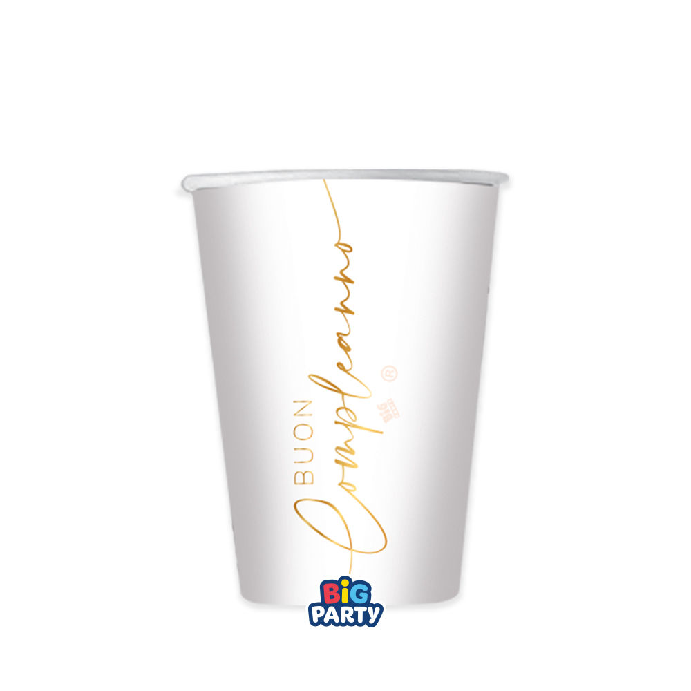 ✨ Brilla con stile nel giorno del tuo compleanno! I bicchieri Buon Compleanno Gold da 250 cc, firmati Big Party, sono perfetti per feste eleganti, party serali e allestimenti scintillanti. La grafica oro su fondo bianco dona un tocco di classe a ogni tavola.