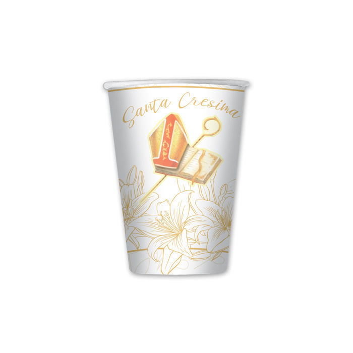 Set da 8 bicchieri in carta 200 cc tema Cresima Big Party, ideali per allestimenti tavola cerimonia e festa religiosa.