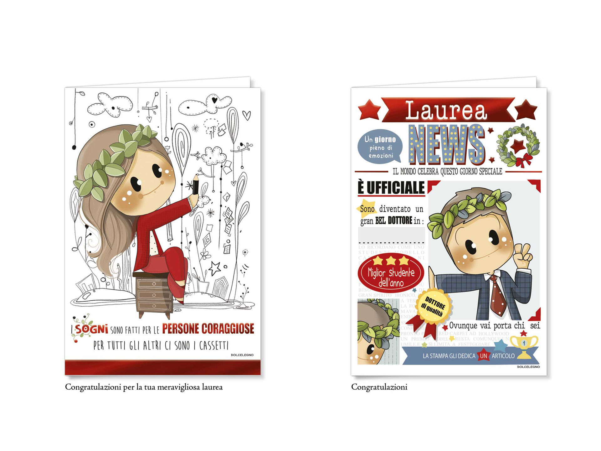 Biglietti Laurea Bubine dal design originale e vivace, perfetti per accompagnare auguri e regali dedicati al traguardo universitario.