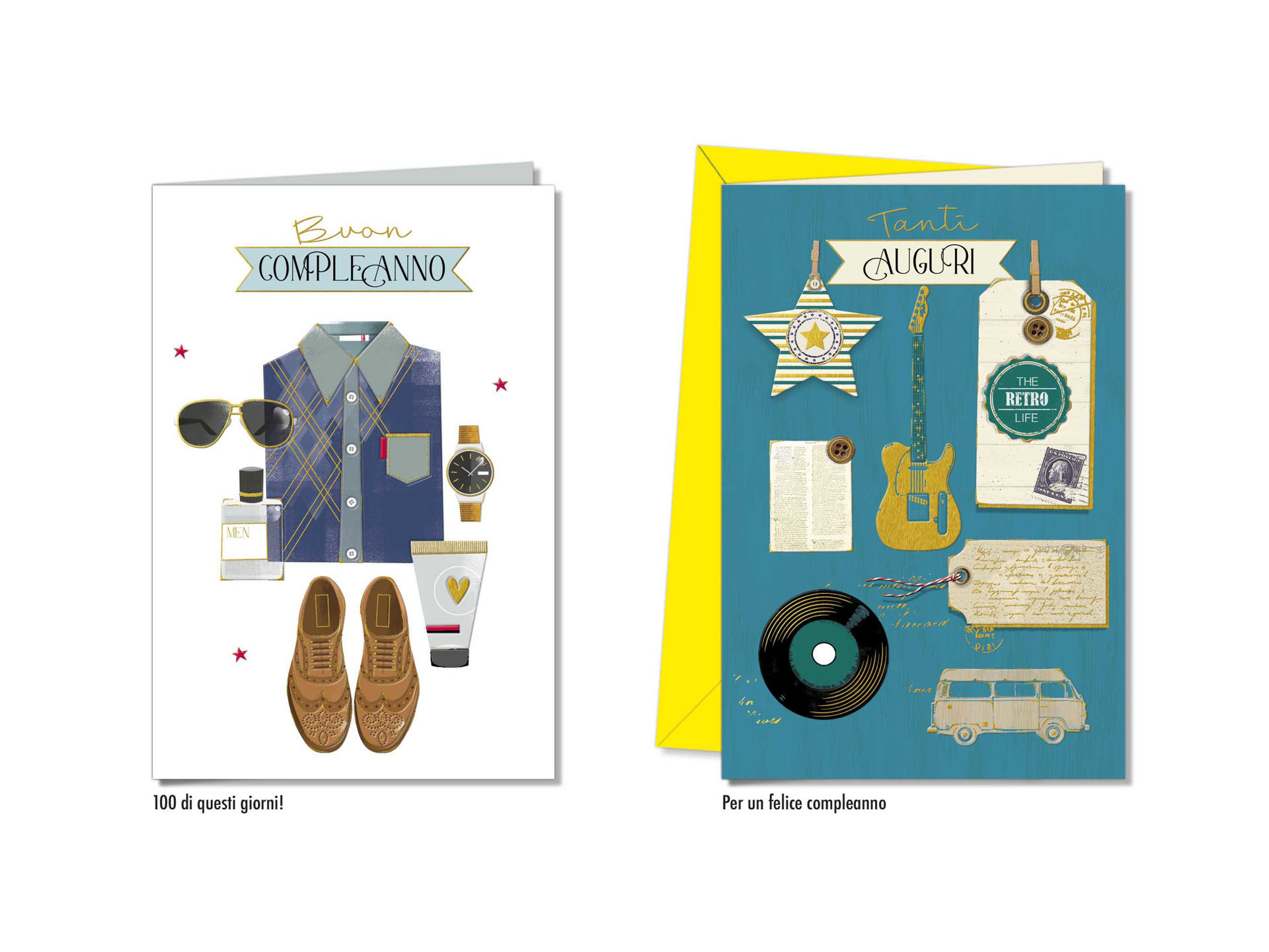Biglietti maschili dal design moderno e versatile, ideali per accompagnare auguri e messaggi dedicati a uomini di ogni età.