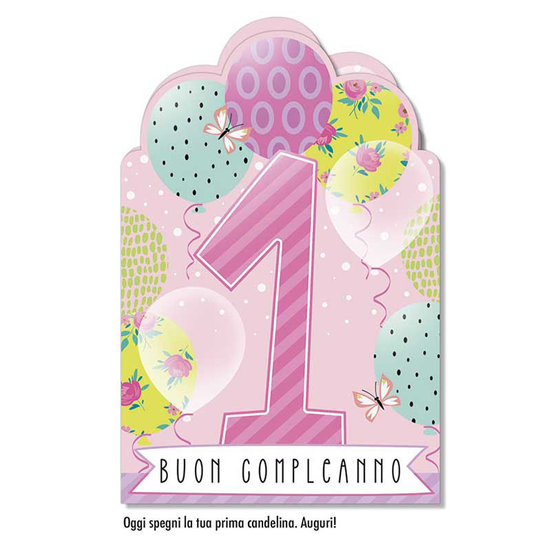 Biglietto di Auguri 1° Compleanno Bimba – Design Dolce e Raffinato