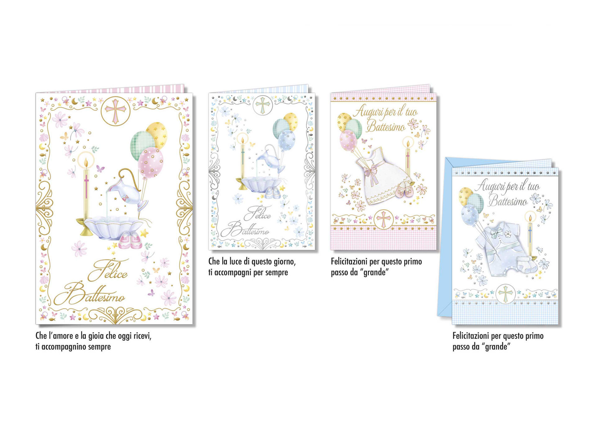 Biglietto di auguri per Battesimo religioso elegante e simbolico, perfetto per celebrare una cerimonia sacra con un messaggio affettuoso.