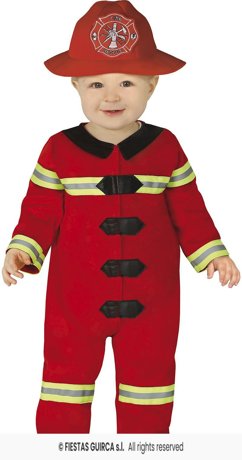Questo simpatico costume da pompiere per bambini piccoli è perfetto per i primi travestimenti! Realizzato in tessuto morbido e confortevole, include una tuta rossa intera con dettagli neri e bande riflettenti giallo-fluo su maniche, busto e gambe.