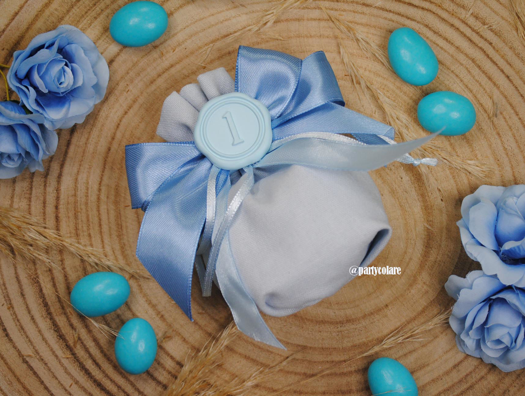 🎂💙 Un piccolo pensiero per un primo anno indimenticabile. La bomboniera celeste è composta da un saccoccio in tessuto, decorato con fiocco e ceralacca celeste con numero 1 inciso. Completa di confetti Maxtris e bigliettino personalizzato.