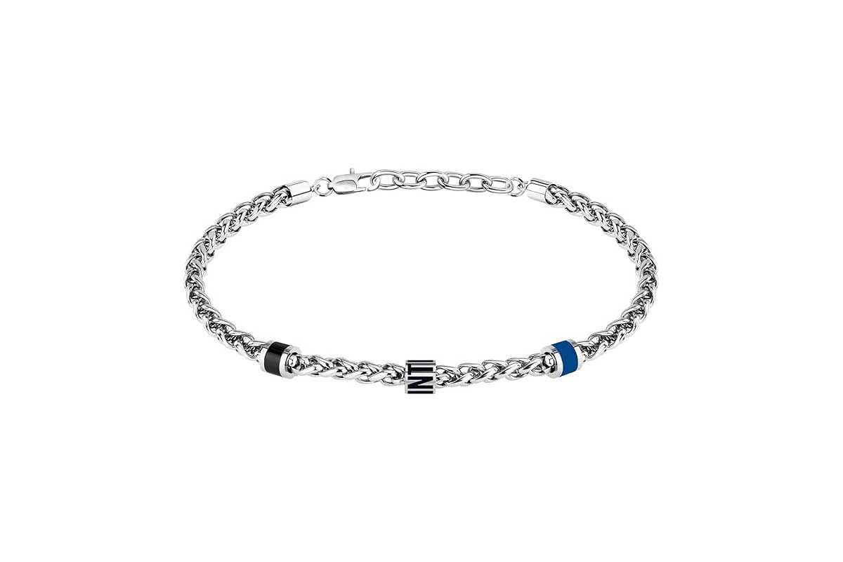 Bracciale in acciaio con pietre Inter Milan, elegante e sportivo, ideale come accessorio e idea regalo per tifosi.