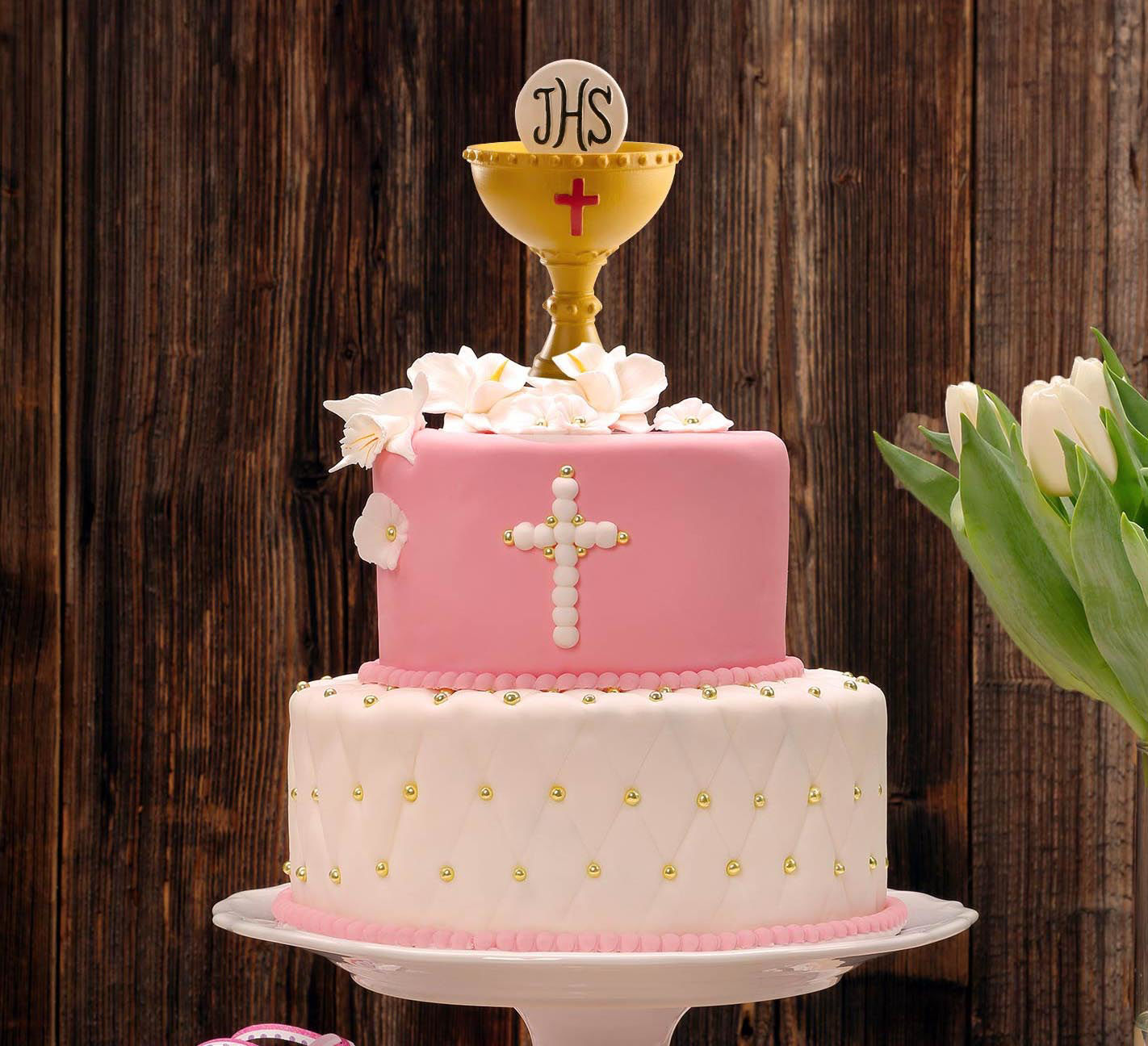Questo cake topper con Calice, alto 11 cm, è realizzato in materiale resistente e curato nei dettagli. Simbolo centrale della Prima Comunione, rappresenta il momento della fede con delicatezza ed eleganza.