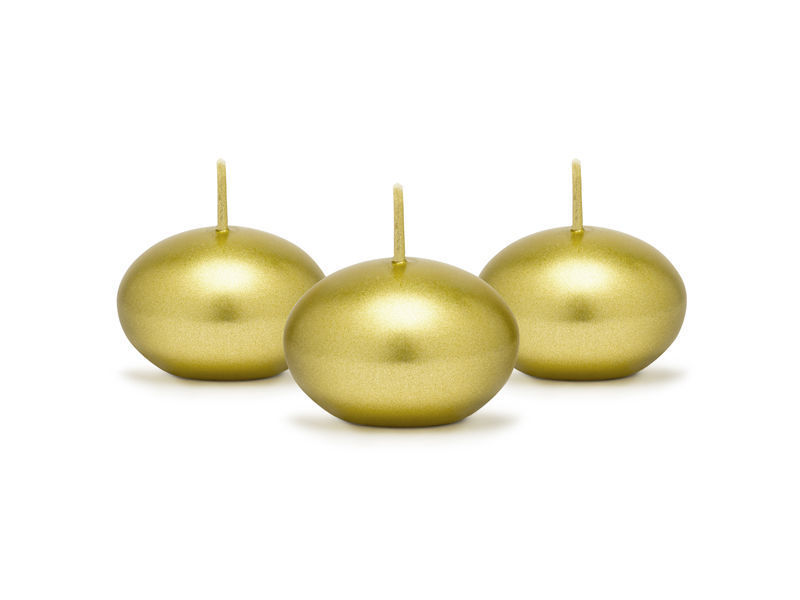 Candele galleggianti color oro 4 cm, ideali per centrotavola, eventi e decorazioni eleganti.