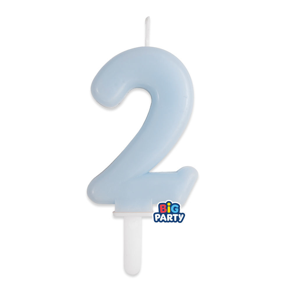 Candelina numero 2 linea Tiny Plump colore celeste, perfetta per decorare torte di compleanno con uno stile delicato e moderno.