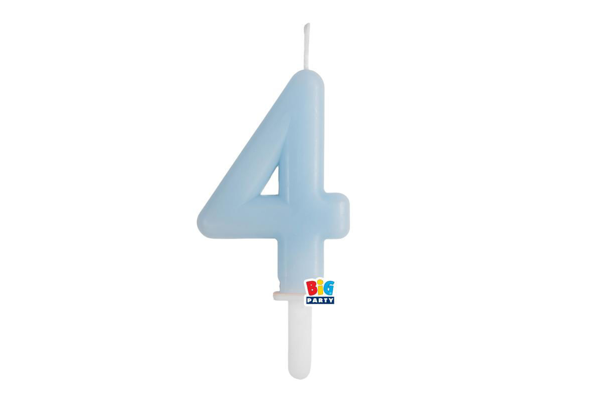 Candelina numero 4 linea Tiny Plump colore celeste, perfetta per decorare torte di compleanno con uno stile delicato e moderno.