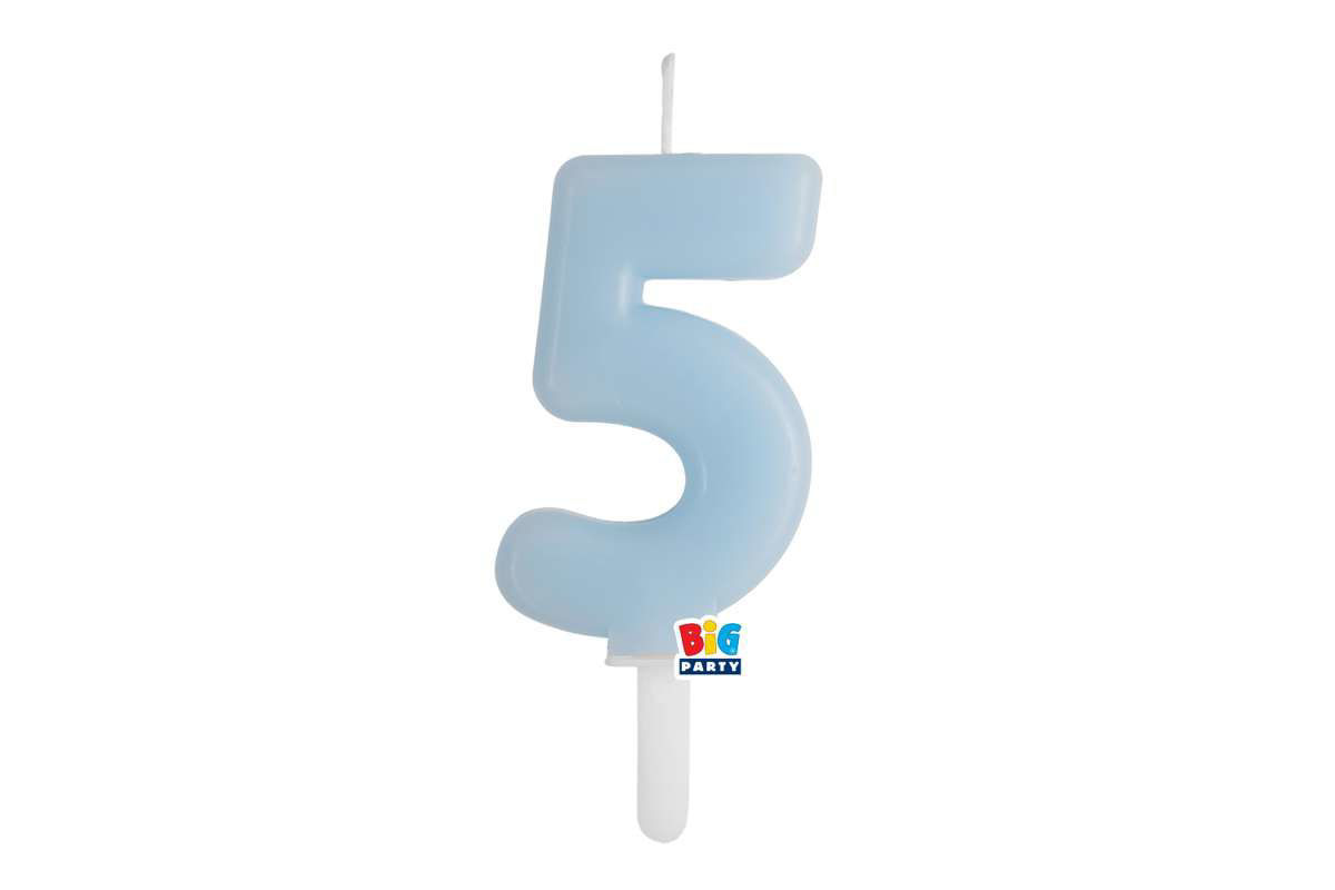 Candelina numero 5 linea Tiny Plump colore celeste, perfetta per decorare torte di compleanno con uno stile delicato e moderno.