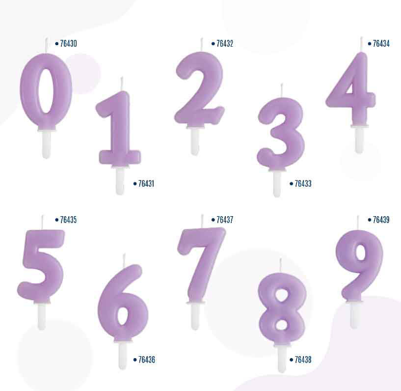 Candelina Tiny Plump Lilla numeri da 0 a 9 - dimensione completa di supporto 7 cm
