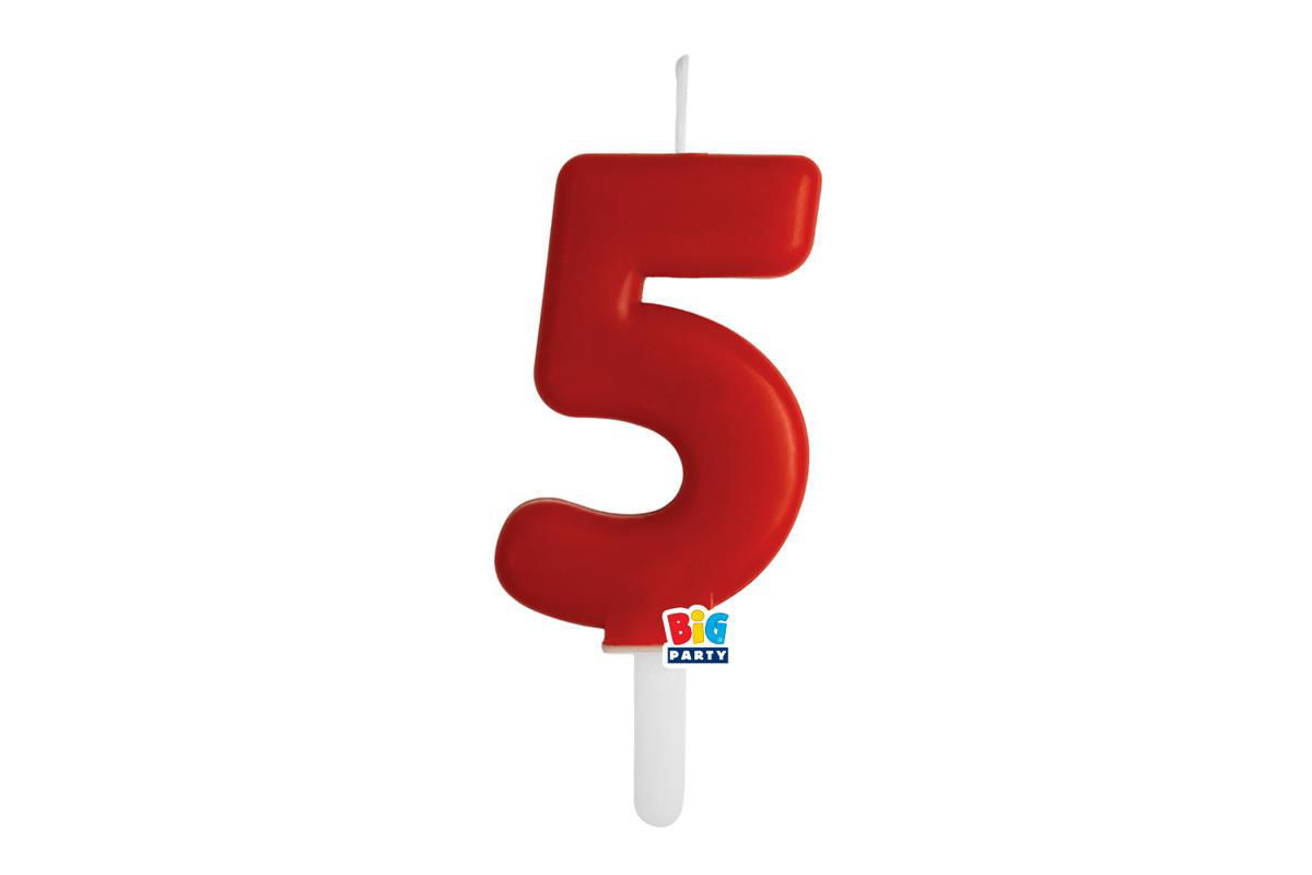 Candelina numero 5 linea Tiny Plump colore rosso, perfetta per decorare torte di compleanno con uno stile vivace e moderno.