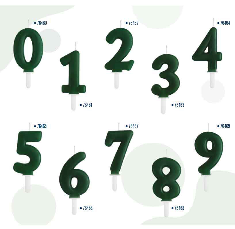 Candelina Tiny Plump Verde Foresta  numeri da 0 a 9 - dimensione completa di supporto 7 cm