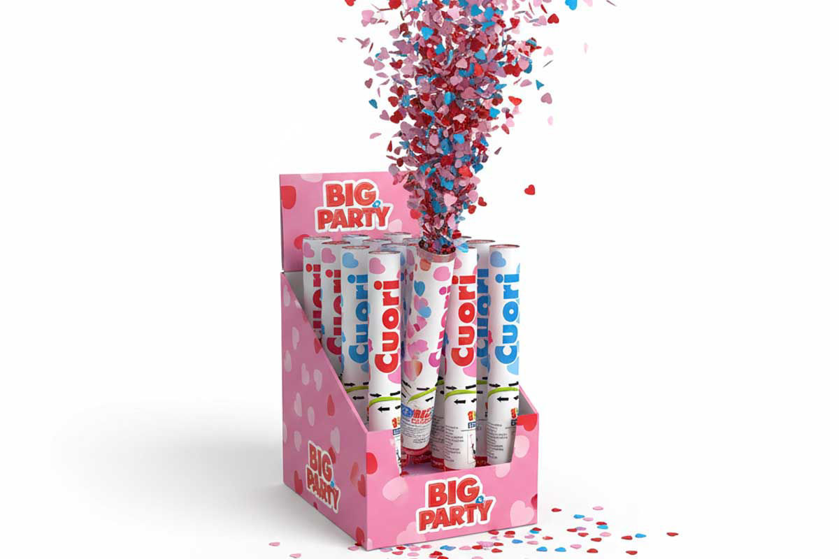 Cannone sparacoriandoli a forma di cuore ideale per creare un effetto romantico e scenografico, perfetto per feste, eventi e celebrazioni speciali. Disponibile in più colori e misure selezionabili singolarmente dal menu in basso.