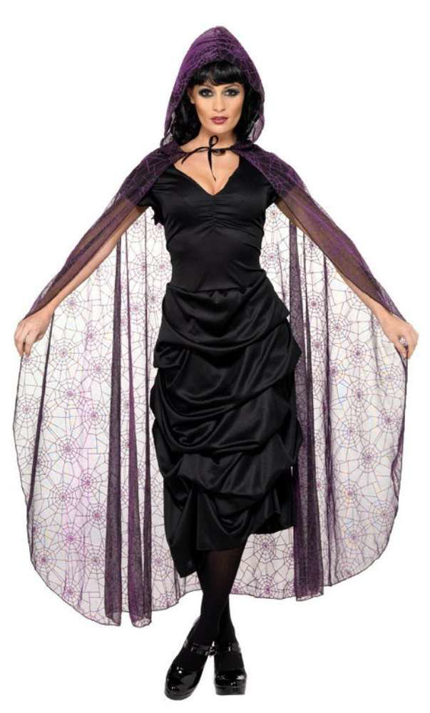 Mantello Nero con Cappuccio e Ragnatele Taglia S
