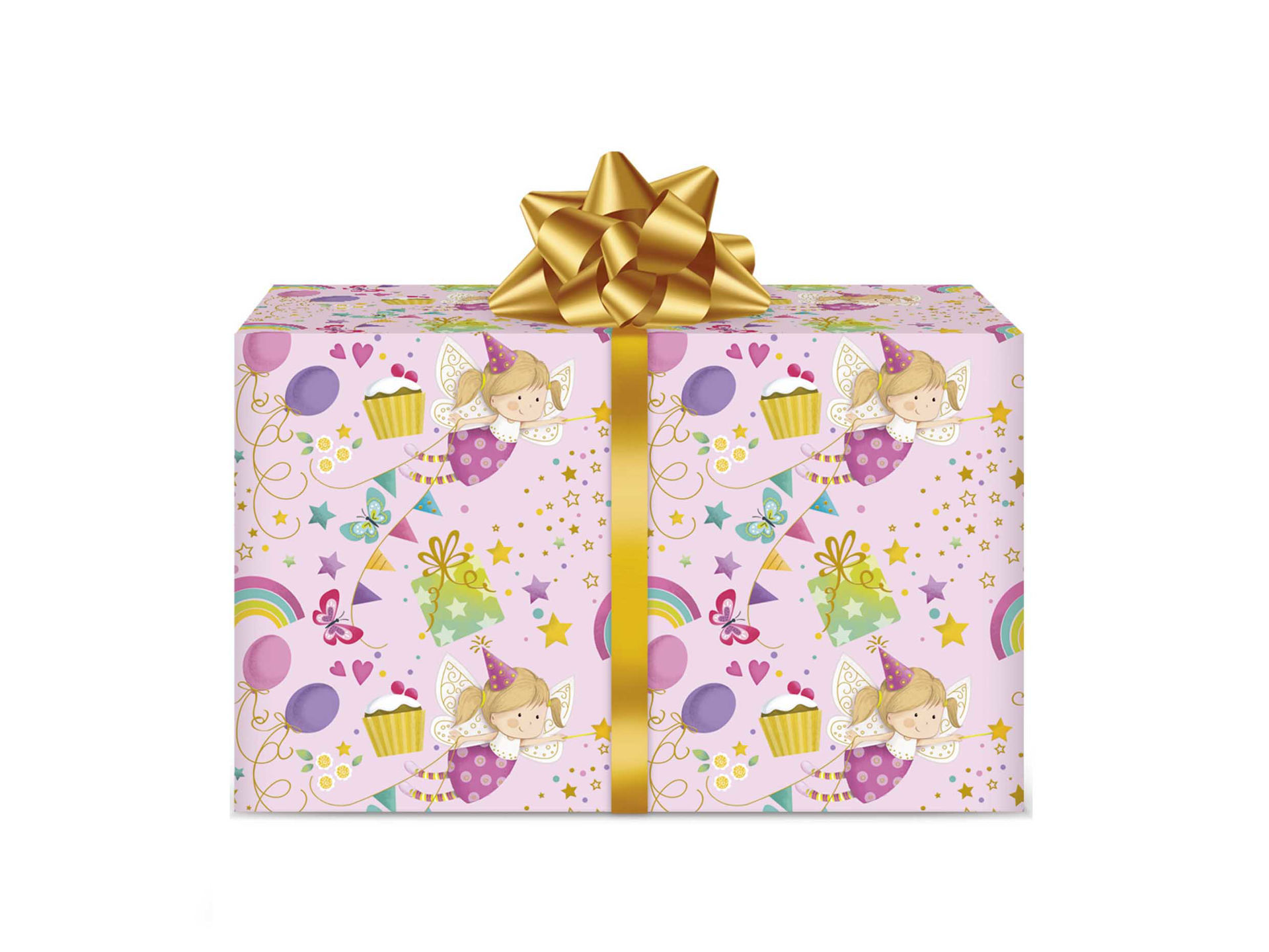 Carta regalo 70x100 cm per bambina, colorata e delicata, ideale per incartare regali con uno stile allegro e raffinato.
