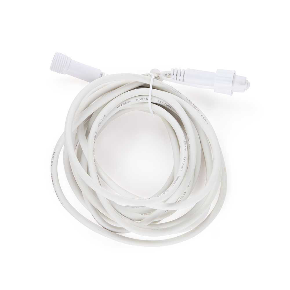 Cavo prolunga luce da 5 metri, filo bianco, tensione 220V. Ideale per collegare e prolungare catene luminose e decorazioni natalizie.