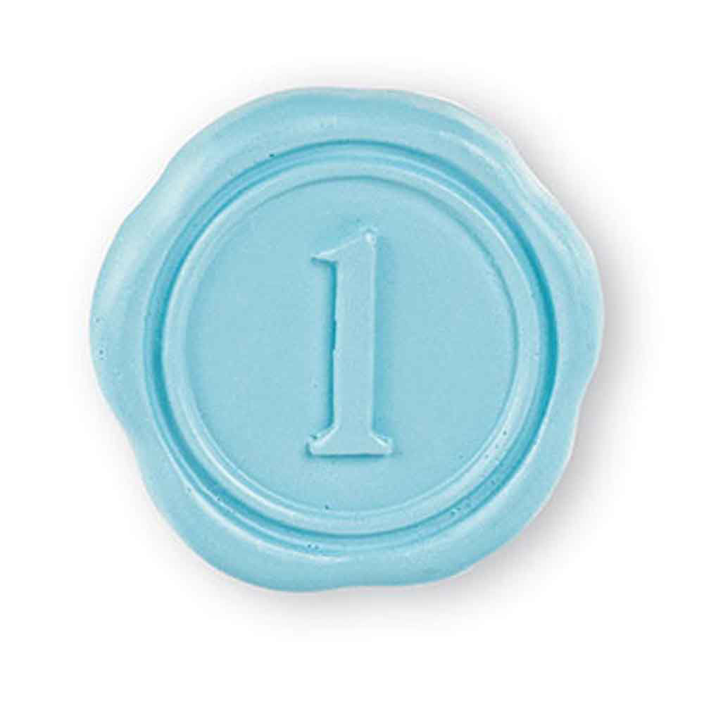 Questo sigillo decorativo in ceralacca sintetica azzurra, dal finish lucido e bordi irregolari come la ceralacca tradizionale, presenta il numero “1” in rilievo ed è dotato di adesivo sul retro per una facile applicazione su qualsiasi superficie. Ideale per allestimenti delicati e festosi.